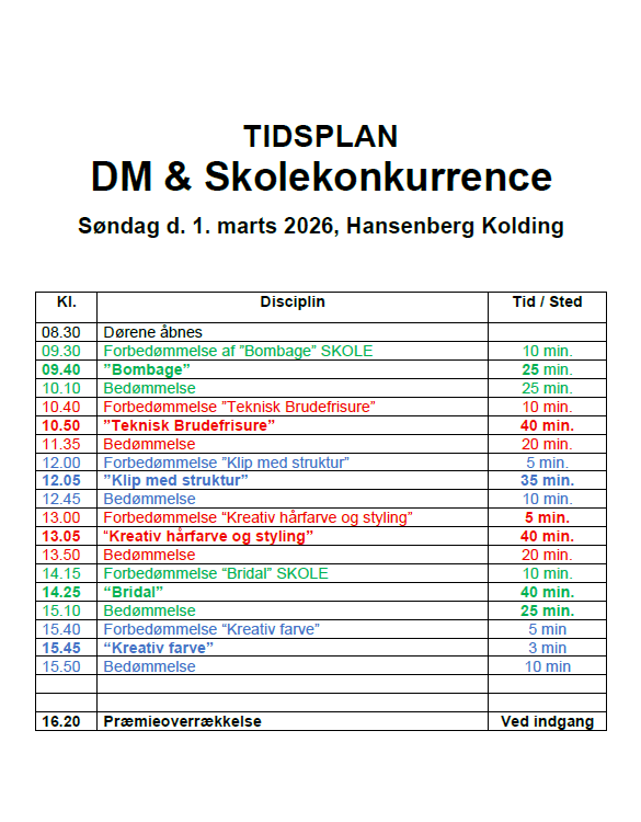 Faglig Ordning afholder DM, Skolekonkurrence og Årets Frisør Foto søndag den 1. marts 2026 på Hansenberg i Kolding.